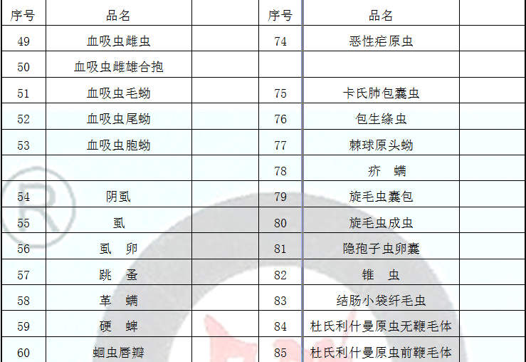 51 血吸蟲毛蚴 75 卡氏肺包囊蟲