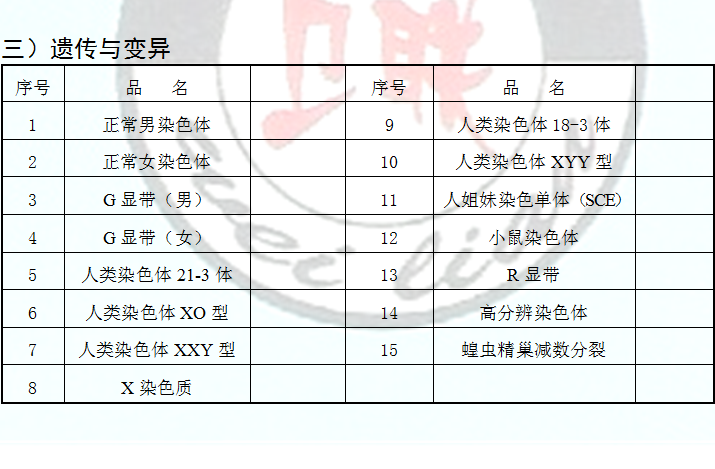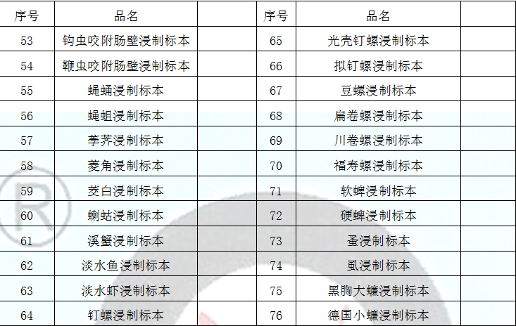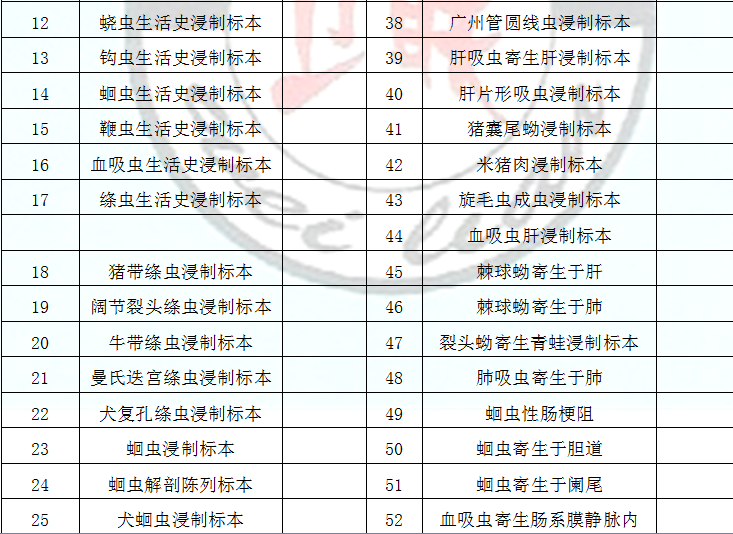 16 血吸蟲生活史浸制標本   42 米豬肉浸制標本