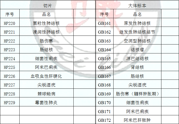 9 肺吸蟲生活史浸制標本   35 棘球蚴浸制標本